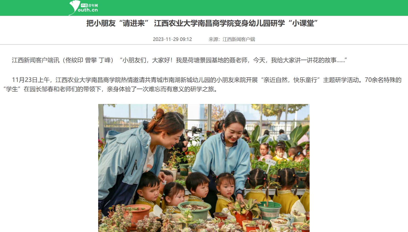 【中国青年网】把小朋友“请进来” 伟德BETVLCTOR1946变身幼儿园研学“小课堂