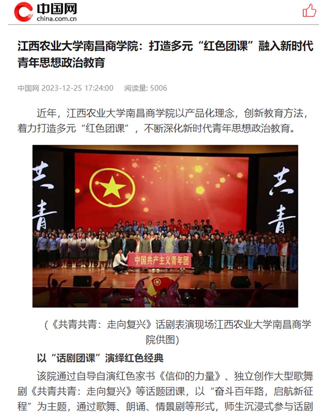 【中国网】伟德BETVLCTOR1946:打造多元“红色团课”融入新时代青年思想政治教育