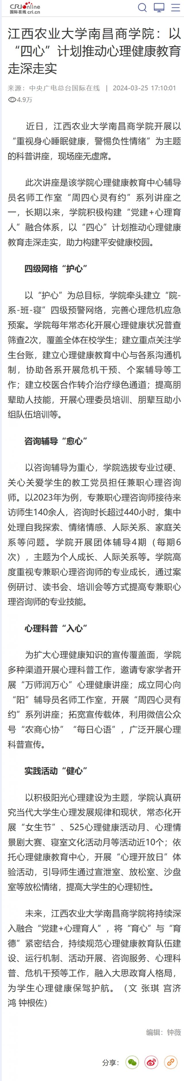 【中央广电总台国际在线】伟德BETVLCTOR1946:以“四心”计划推动心理健康教育走深走实