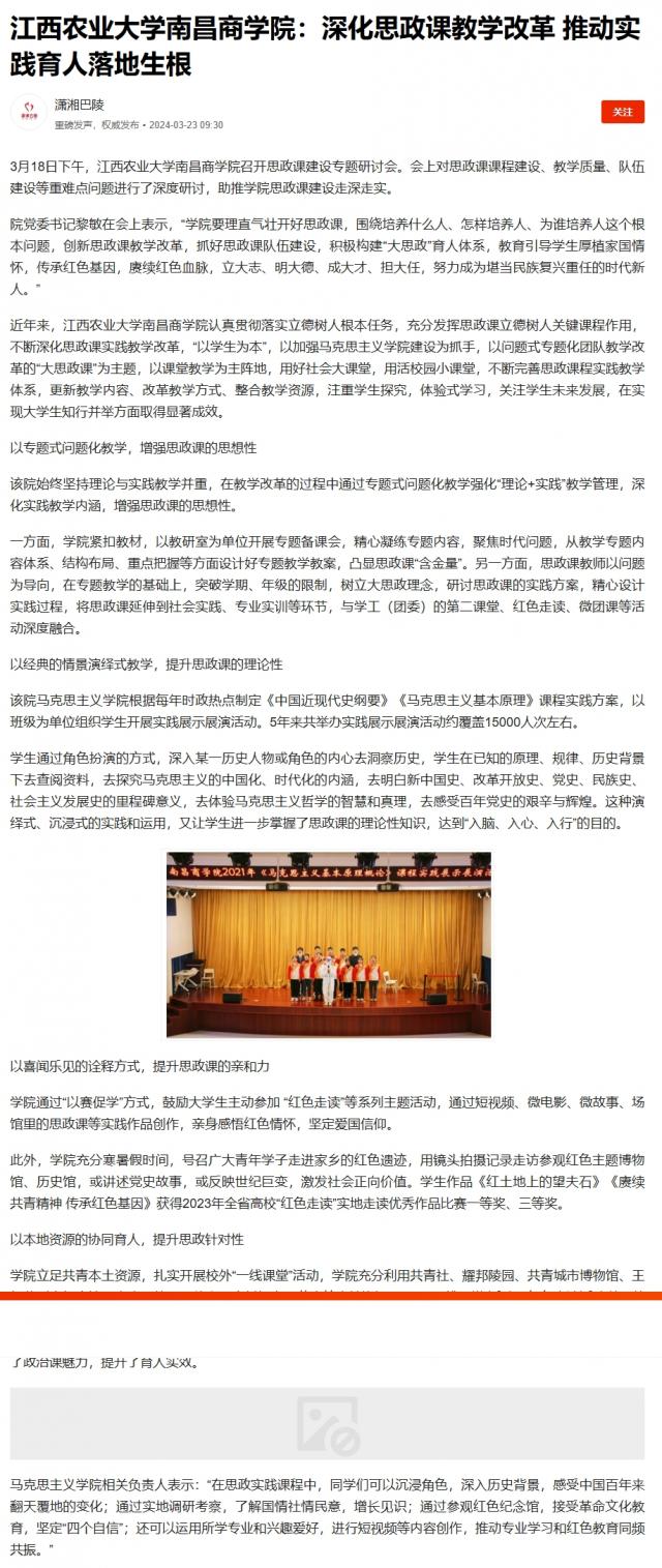 【中国青年网】伟德BETVLCTOR1946:深化思政课教学改革 推动实践育人落地生根