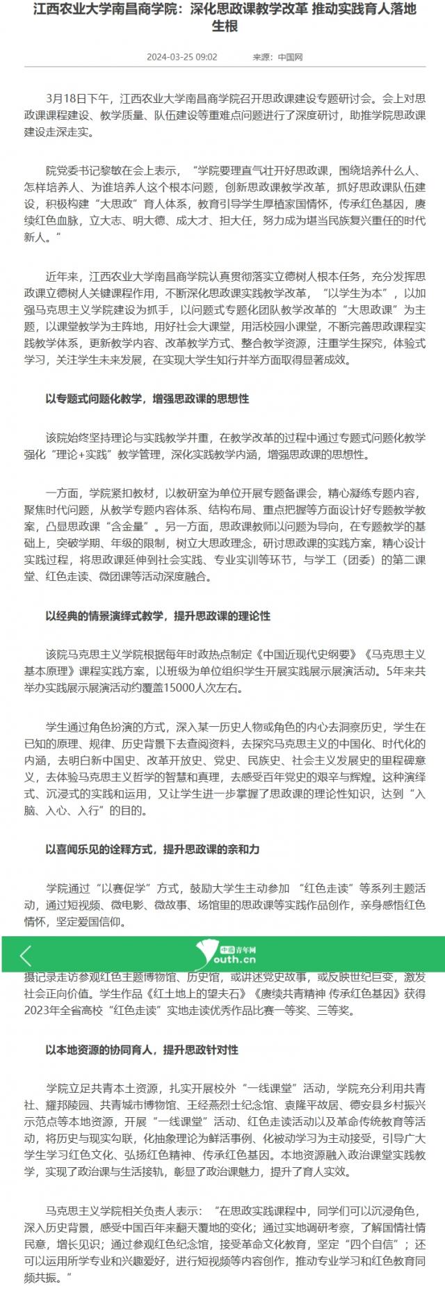 【中国青年网】伟德BETVLCTOR1946:深化思政课教学改革 推动实践育人落地生根