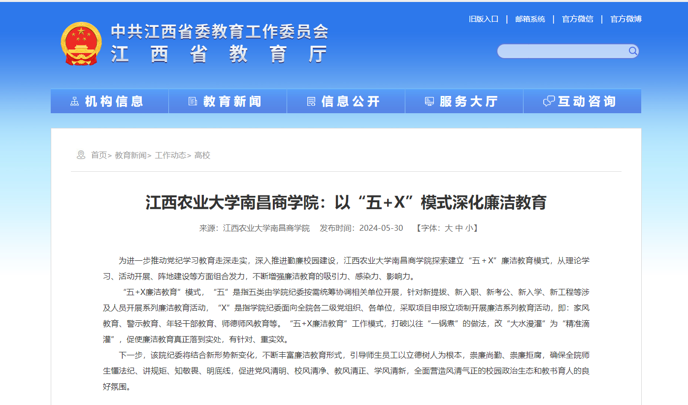 【江西省教育厅】伟德BETVLCTOR1946:以“五+X”模式深化廉洁教育