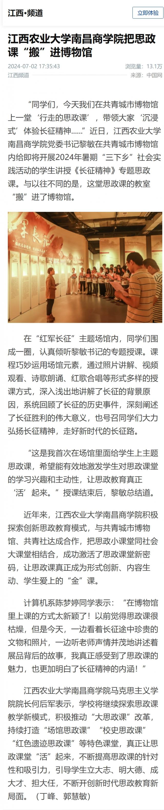 【江西新闻】伟德BETVLCTOR1946把思政课“搬”进博物馆