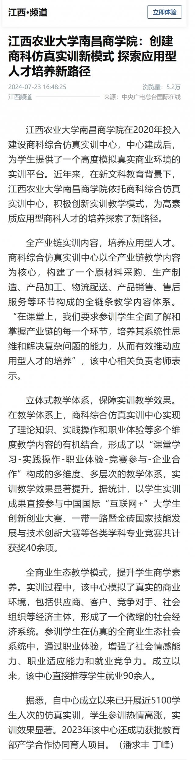 【中国日报】伟德BETVLCTOR1946:创建商科仿真实训新模式,探索应用型人才培养新路径