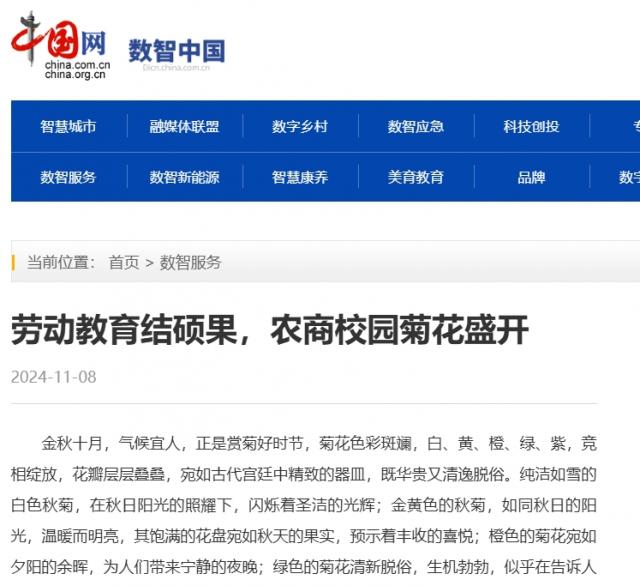 【中国网】劳动教育结硕果,农商校园菊花盛开