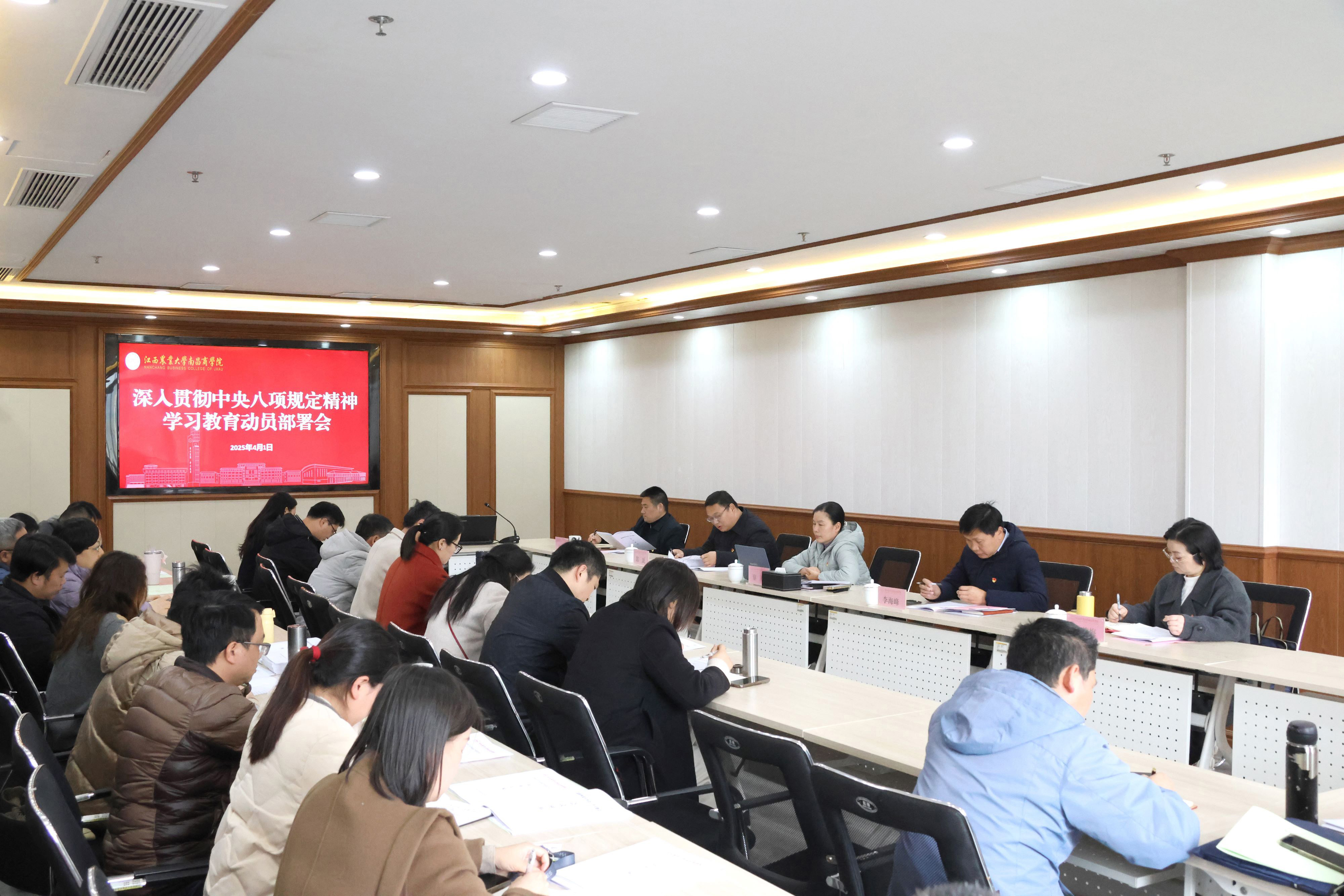 为深入贯彻中央八项规定精神学习教育,进一步加强党的作风建设,4月1日下午,学院在明道楼203会议室召开深入贯彻中央八项规定精神学习教育部署会暨党委理论学习中心组第五次学习(扩大)会。公司党委书记黎敏主持,中心组在家成员、院属各单位党政负责人及部分教师参加。