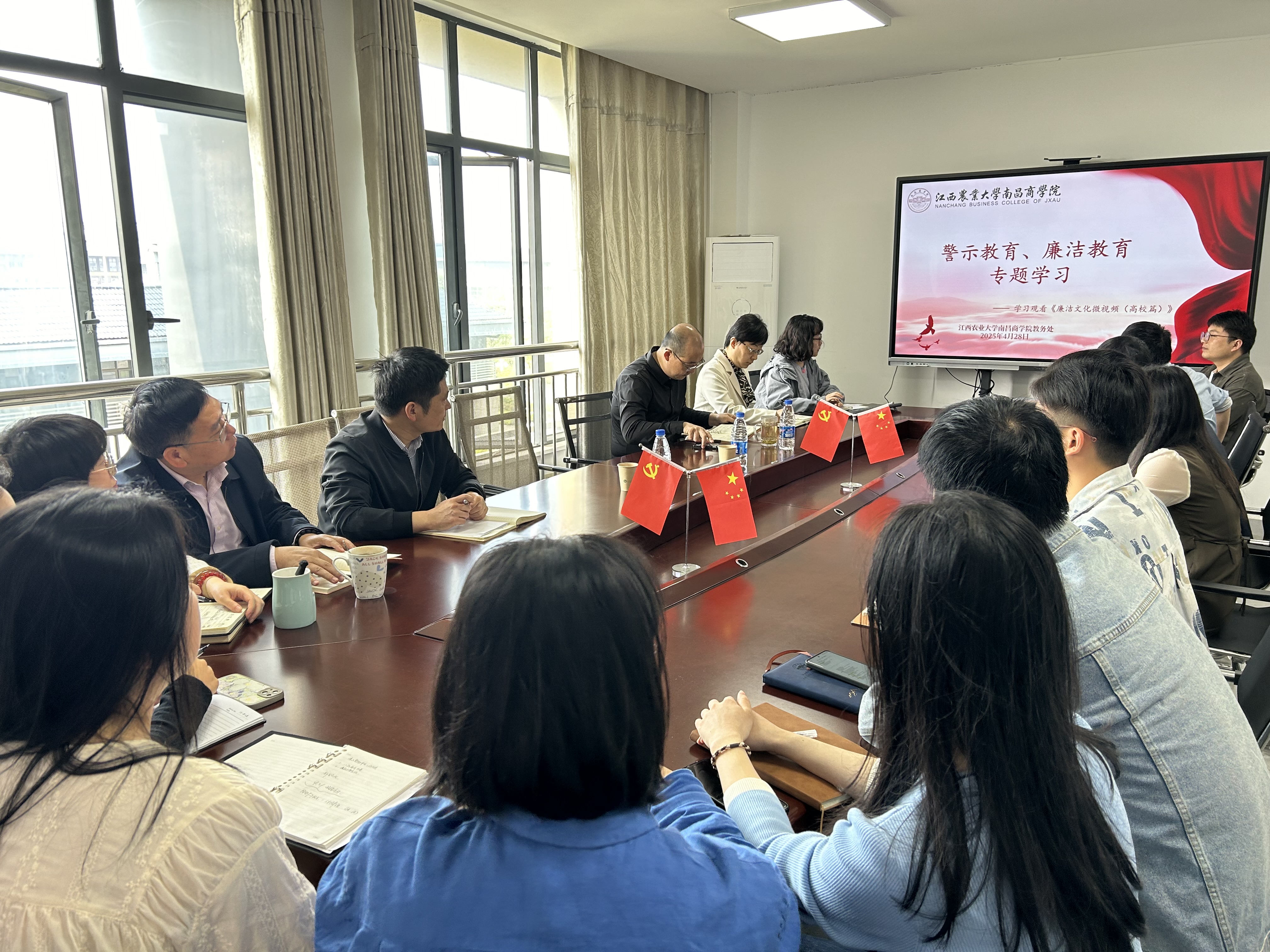 为深入贯彻中央八项规定精神学习教育,落实全面从严治党要求,进一步加强党风廉政建设,4月28日上午,教务处在明辨楼KS303室组织全体教师开展警示教育、廉洁教育专题学习。